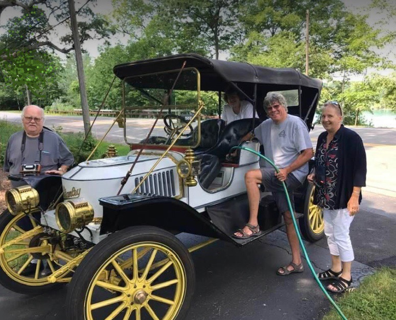 Local good Samaritan Steve Denn helps Ohio tourists get back to Niagara Falls. Denn, watering the new grass along his Lower River Road property, was approached by the tourists who were in need of water for their 1909 Stanley Steamer Model R. The vintage vehicle holds 20 gallons and gets one mile per gallon. Denn was told that his water hose was "like gold."