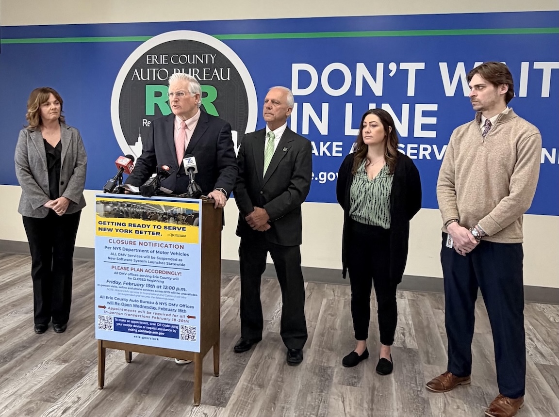 On Monday, Erie County Clerk Michael P. Kearns and Niagara County Clerk Joseph A. Jastrzemski announced the New York State Department of Motor Vehicles is preparing over the long Presidents Day weekend to launch the first phase of a new, modernized technology system designed to improve customer service and streamline operations for both residents and staff.