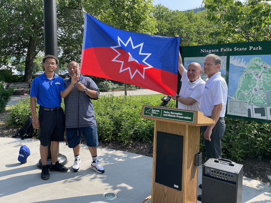 Representatives from Niagara Falls State Park and the 5th Annual Niagara Falls Juneteenth Festival committee joined together Friday to raise the Juneteenth flag outside of the welcome center plaza.