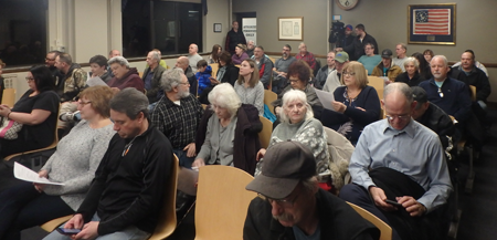 A crowd - standing room only - faced North Tonawanda officials at the Jan. 7 public hearing for the proposed changes to the city's sanitation program. Several residents approached the board with deep objections to the recommendations proposed by Niagara County Environmental Science Coordinator Dawn Timm and DPW Superintendent Mark Zellner.