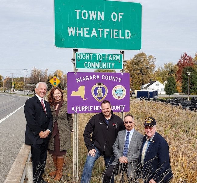 Republican members of the Niagara County Legislature joined County Clerk Joseph Jastrzemski and Wheatfield Town Supervisor and Purple Heart recipient Don MacSwan on Niagara Falls Boulevard today to unveil the first of several county-designated "Purple Heart" signs, which will be installed throughout various locations in the county.