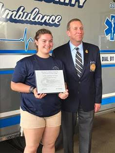 The Firemen's Association of the State of New York has awarded the 2019 FASNY Gerard J. Buckenmeyer Volunteer Scholarship to Megan Amacher of Sanborn. Amacher received a certificate and scholarship of $1,500 for her volunteer service in the community from Andrew Pilecki, member of the FASNY board of directors.
