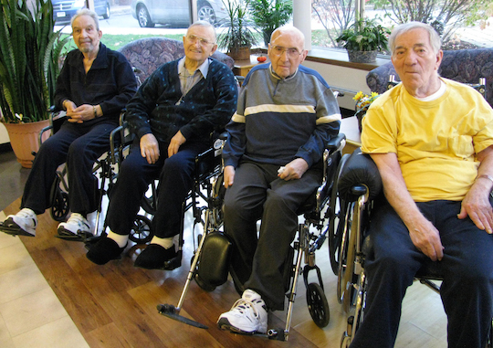Four members of the "Greatest Generation" who now live at Schoellkopf Health Center traveled to Hyde Park today to attend Veterans Day ceremonies at the Niagara Falls Veterans Memorial. All four served in the U.S. armed forces in World War II.
