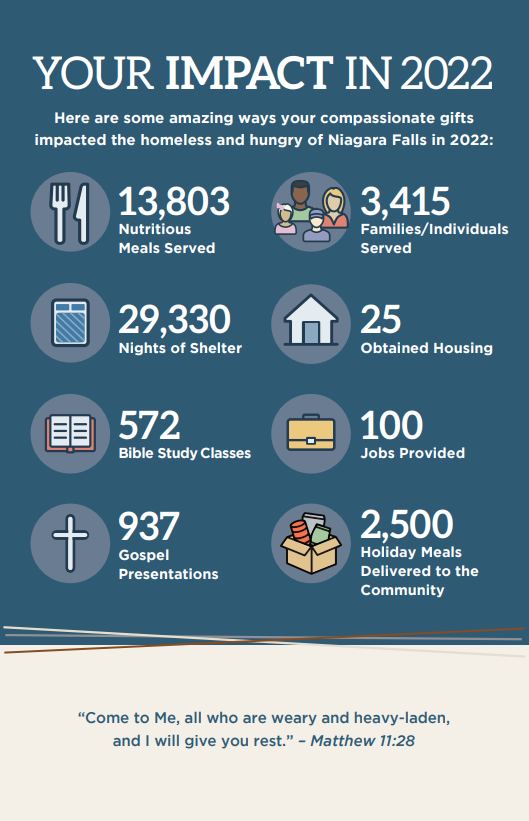 Niagara Gospel Mission, 1317 Portage Road in Niagara Falls, has had a huge impact on the people of Niagara Falls, and wants to thank the community for making it possible.