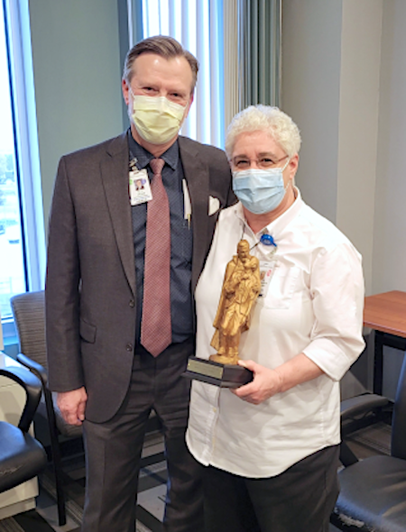 Mount St. Mary's Hospital recently presented the DAISY Award to Theresa Schuey, R.N., a nurse in the Clearview Treatment Services unit of the hospital.
