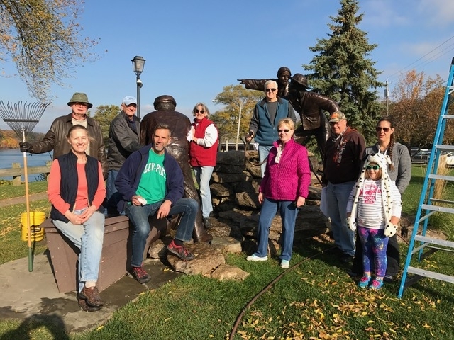 The village's two large-scale bronze monuments underwent their annual maintenance recently, when volunteers from the Historical Association of Lewiston cleaned and waxed the renowned sculptures.