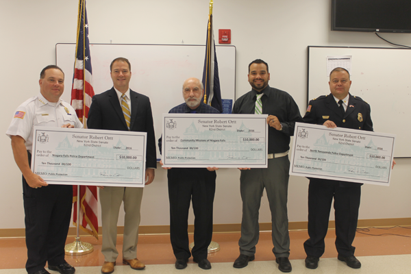 During a ceremonial check presentation Thursday, New York State Sen. Rob Ortt delivered a total of $30,000 in state funding to help protect members of the public and support programs and services in Niagara County.