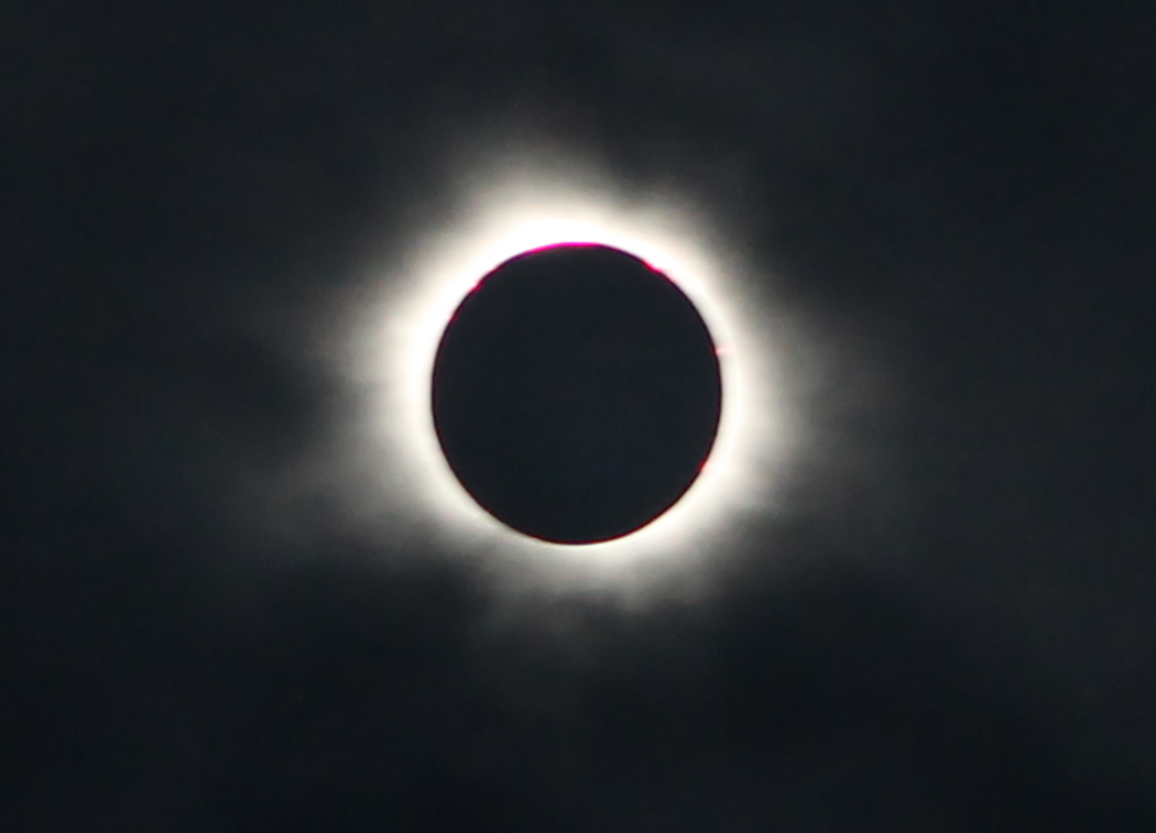 The solar eclipse fought its way through the clouds across Western New York on Monday.