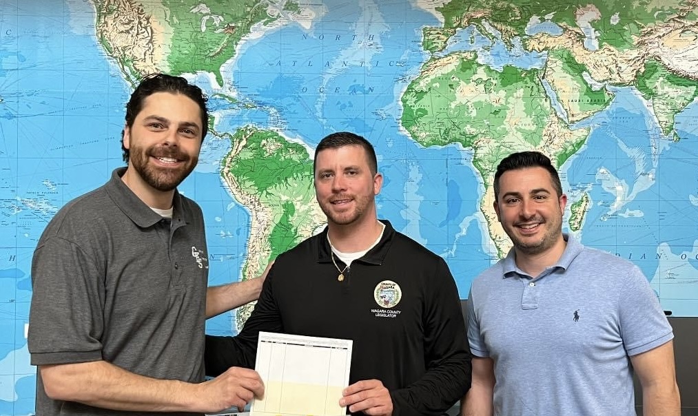 Niagara County Legislator Christopher McKimmie secured $3,500 in Community Partnership Funds to purchase automated external defibrillators (AEDs) for the Niagara Falls Police Athletic League (PAL). A check was presented to Niagara PAL Board President Phil Mohr and Treasurer Joe Maggi at A board meeting on Monday.