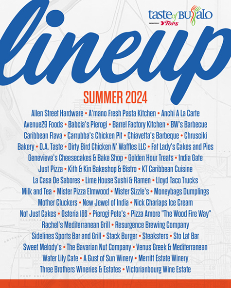 The Taste of Buffalo presented by Tops announced 44 restaurants and food trucks and four wineries will participate in the 41st annual celebration of Buffalo's food scene, which will be held July 13 and 14 along Delaware Avenue and Niagara Square in downtown Buffalo.