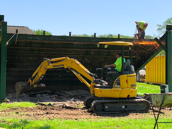The green bleachers were torn down on Tuesday and Wednesday. Lewiston Event Center co-owner Harold Hibbard donated manpower to have the seating area demolished.