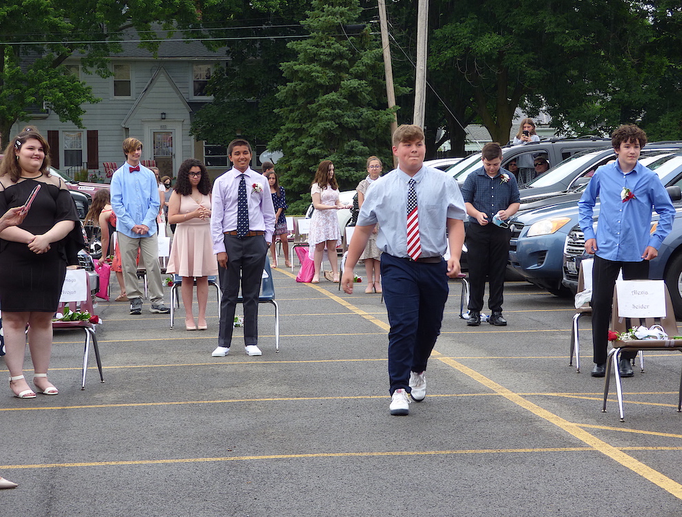 St. Peter R.C. School held an outdoor celebration of its eighth grade class on Monday, abiding by the governor's rules for social distancing and graduation ceremonies.