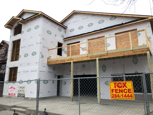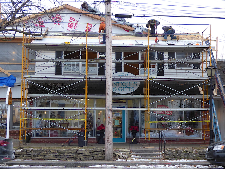 Construction is continuing on the second-floor living quarters above The Como Deli and The Country Doctor at South Sixth and Center streets in Lewiston. Owner Zach Casale is renovating the units while also adding a clock tower.