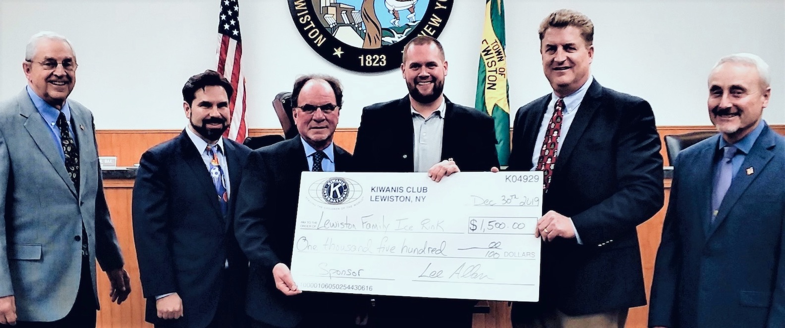 On Monday, Dec. 30, during the Town of Lewiston's final board meeting of 2019, Kiwanis Club of Lewiston President Lee Allan presented a $1,500 donation toward the Lewiston Family Ice Rink.