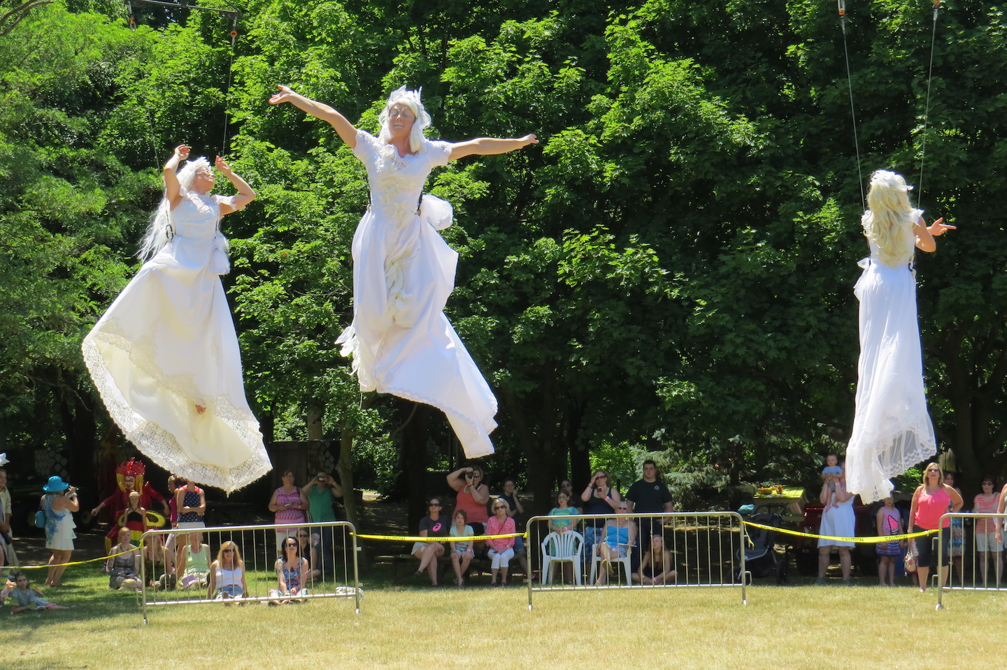 Fairies flew high above the state park Saturday as costumed characters performed sketches and took pictures with winged youngsters. Audiences were spellbound with visual, whimsical and just plain unusual performances from The Lost Wheels of Time (Israel), Circus Orange (Canada) and Giraffe Royal (Estonia).