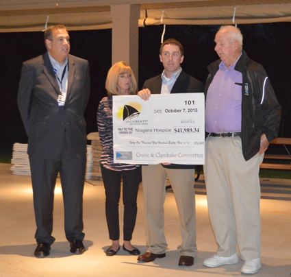 The Jack Beatty Memorial Cruise and Clambake, held July 10 to benefit Niagara Hospice, continued its tradition of entertainment, food and leisurely sailing and power boating in the lower Niagara River. Now in its 16th year, the event raised a record amount of $41,989.34, which was presented to Niagara Hospice on Wednesday.