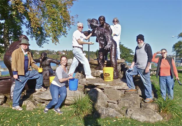 Every year, volunteers from the Historical Association of Lewiston wash, wax and buff Lewiston's bronze monuments to keep them looking new.