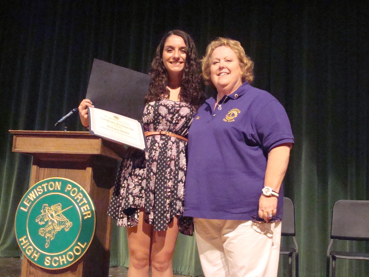 Brittany Mehzir, a Lewiston-Porter High School graduating senior, was awarded a $500 scholarship from the Lewiston Community Lions Tuesday. Lion Sheila Zuhlke was present at the awards luncheon to present Mezhir with a check.