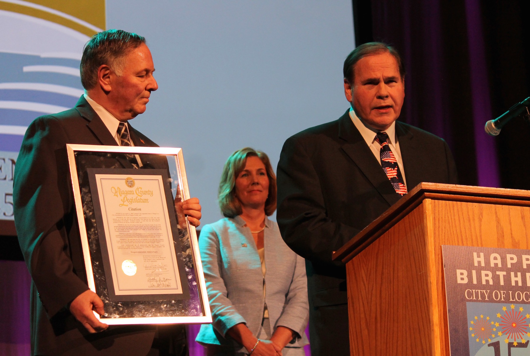 One-hundred and fifty years after officially becoming a city, Lockport is still going strong - something that was evident Saturday as hundreds of Lockportians packed the city's historic Palace Theatre to celebrate their history and dive into a birthday cake, complete with 150 candles.
