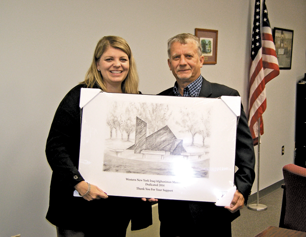 Town of Lewiston Supervisor Dennis Brochey was recently presented with a sketch of the Iraq/Afghanistan Memorial by Connie Przepasniak of the Niagara Air Base.
