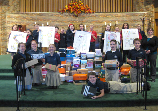 The students of St. Peter's R.C. School in Lewiston kicked off the season of giving by creating shoeboxes filled with gifts for Samaritan's Purse/Operation Christmas Child recipients around world.