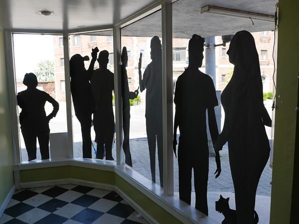Life-sized paper silhouettes of Niagara University students, faculty and staff now adorn the windows of vacant buildings in downtown Niagara Falls, thanks to a partnership between NU and the city's department of community development.