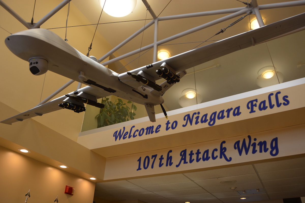 Local officials joined members of the New York Air National Guard's 107th Airlift Wing to acknowledge the venue's redesignation as the 107th Attack Wing. The ceremony was held Tuesday at the Niagara Falls Air Reserve Station.