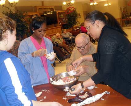 Employees and residents at the McGuire Group's Northgate Health Care Facility in North Tonawanda chased away the winter blues one scoop at a time during a recent ice cream relay event.