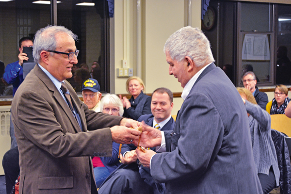 During Tuesday's City of North Tonawanda Common Council meeting, Phillip R. "Russ" Rizzo, former 1st Ward alderman and former council president, and Cathy Schwandt, former alderman-at-large, were honored for their years of service to the city.
