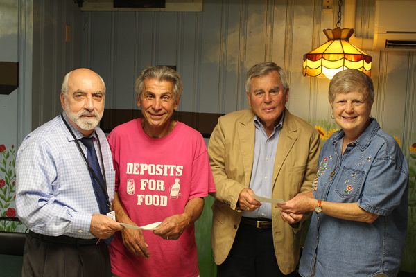 Lewiston resident Angelo Sarkees (left) presents a check to Community Missions Associate Director Joe Sbarbati, while Heart, Love and Soul Food Pantry Executive Director Sister Beth Brosmer receives a check from Modern Corporation Vice President of Community Relations Fran Giles.