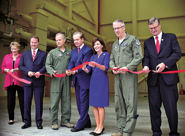 Elected officials and civic leaders gathered Tuesday morning at the Niagara Falls Air Reserve Station to cut the ribbon for a new KC-135 flight simulator facility.