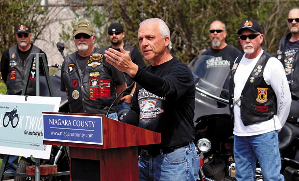 As roughly 30 representatives of area motorcycle clubs riding Harley-Davidson motorcycles surrounded his podium, Niagara County Clerk Joseph Jastrzemski vowed Friday to bolster motorcycle safety outreach at Niagara County's three Department of Motor Vehicles sites.