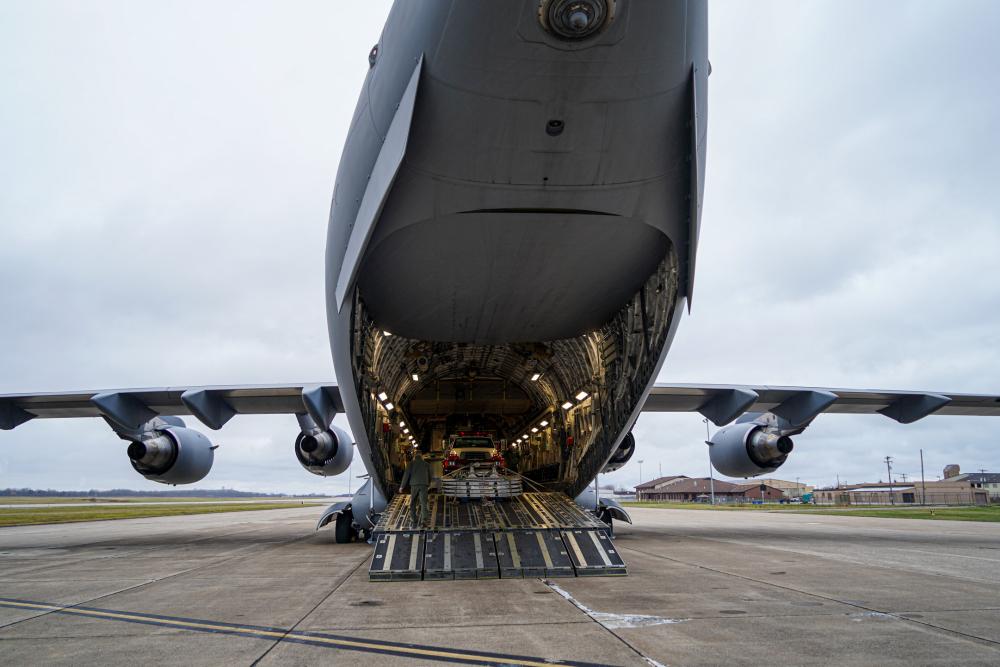 Air transportation specialists, or port dawgs, of the 30th Aerial Port Squadron and loadmasters of the 301st Airlift Squadron loaded a firetruck and a portable water reserve tank onto a C-17 Globemaster III at Niagara Falls Air Reserve Station on Dec. 9, to be donated to La Ciénaga, Dominican Republic.