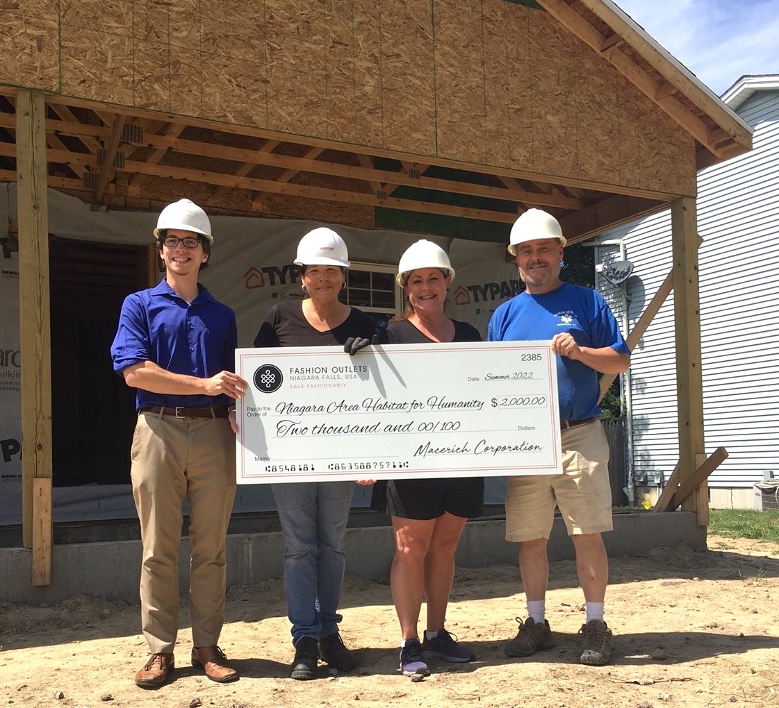 The Fashion Outlets of Niagara Falls management team recently volunteered on site at the Niagara Area Habitat for Humanity's new house construction, on 61st Street in Niagara Falls. In addition to volunteering, the Fashion Outlets presented a check for $2,000 to help with the project.