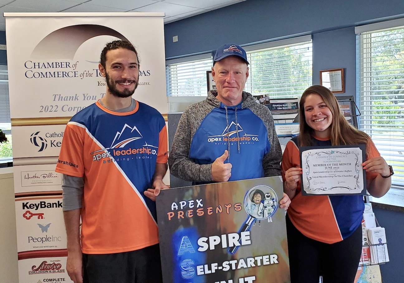 Chamber of Commerce of the Tonawandas Executive Director Sarah Nelson awarded Apex Leadership Co. Greater Buffalo the June Member of the Month recognition.