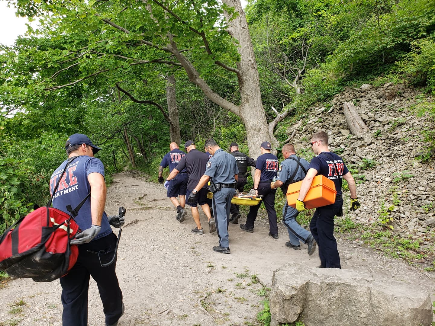 The PBA of New York State announced members from the New York State Park Police partnered with the Niagara Falls Fire Department on the afternoon of Sunday, Aug. 8, to rescue an injured hiker from the Vanderbilt Stairs area of Whirlpool State Park.