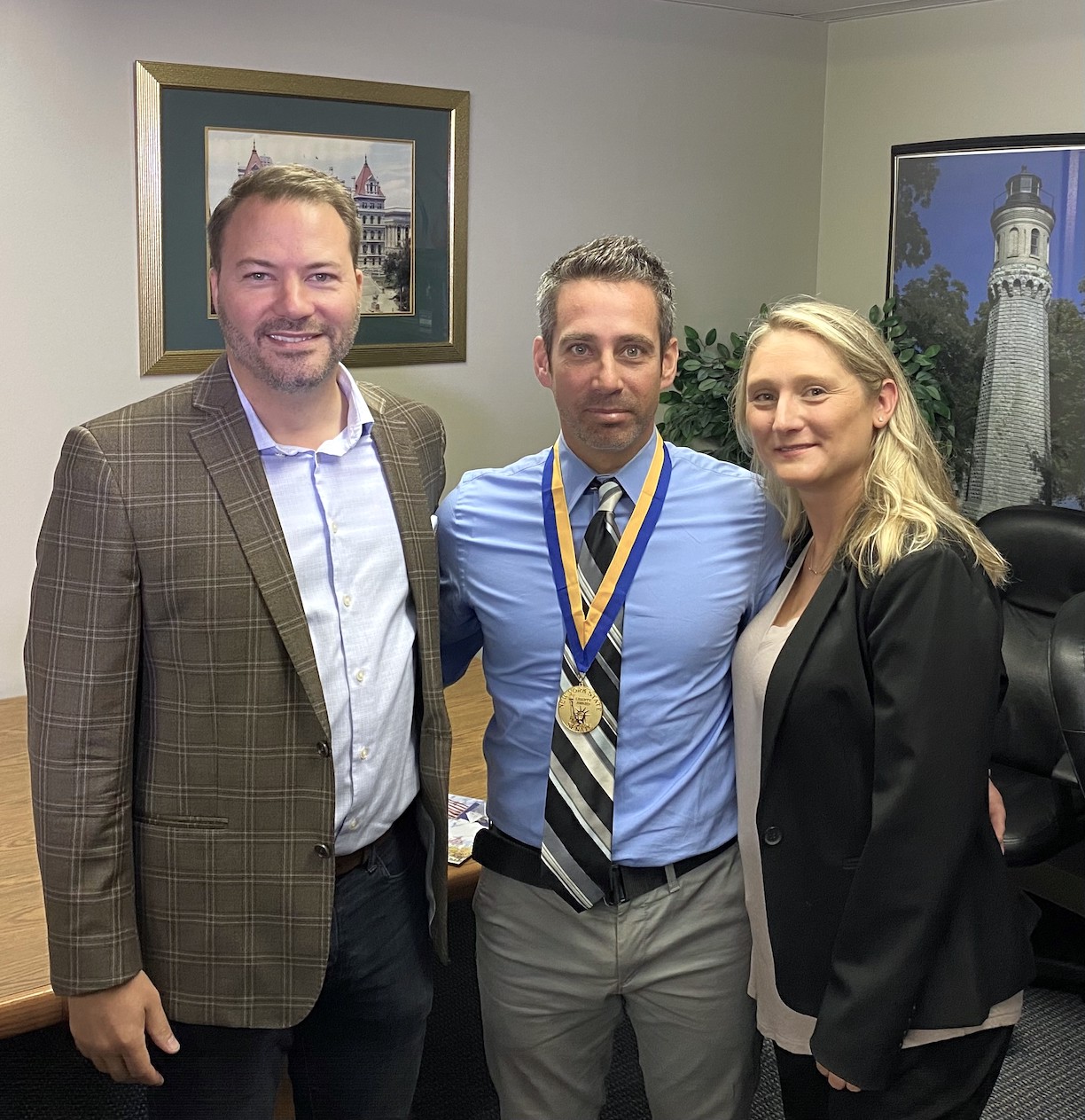 New York State Sen. Robert Ortt awarded a New York State Liberty Medal to Ryan Suitor for his "quick and decisive action in helping save the life of a 2-year-old boy suffering from a severe case of Roseola."