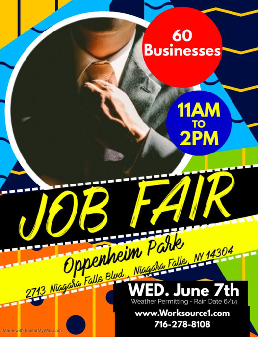 The Niagara County Department of Employment and Training will hold an outdoor career fair on Wednesday, June 7, at Oppenheim Park. Approximately 60 companies with open positions have signed up to take part.