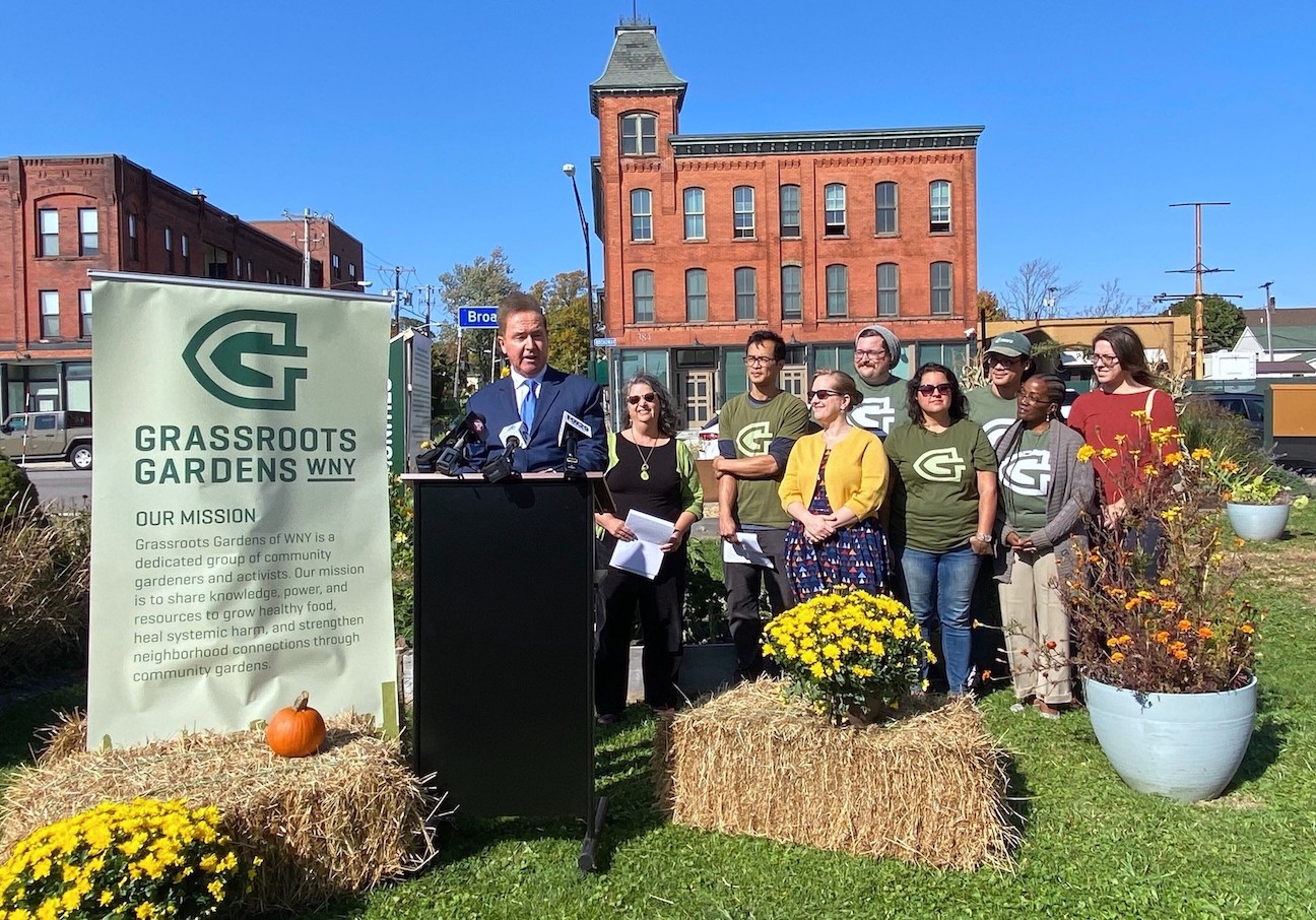 Congressman Brian Higgins announced a federal grant totaling $365,535 awarded to the Massachusetts Avenue Project and Grassroots Gardens of Western New York. Funding comes from the U.S. Department of Agriculture and is awarded through the National Institute of Food and Agriculture's Community Food Projects Grant program. It will support the Buffalo Food Justice Project, which aims to address food equity and access in underserved communities.