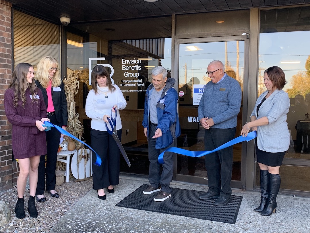 Chamber of Commerce of the Tonawandas Executive Director Sarah Nelson welcomed the organization's newest member, Envision Benefits Group, at a ribbon-cutting ceremony. She said, "Envision Benefits Group joins the growing list of businesses relocating or opening in the Tonawandas."