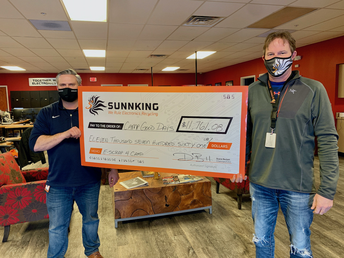 On Tuesday, local electronics recycler Sunnking presented an $11,761 check to Camp Good Days and Special Times, a local nonprofit organization helping children and families living with cancer.