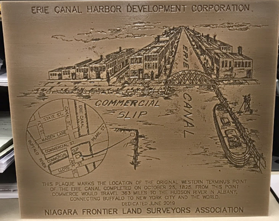 Erie Canal Harbor Development Corp. and the Niagara Frontier Land Surveyors Association (NFLSA) on Wednesday dedicated a land surveyor "monument" commemorating the original western terminus point of the Erie Canal.