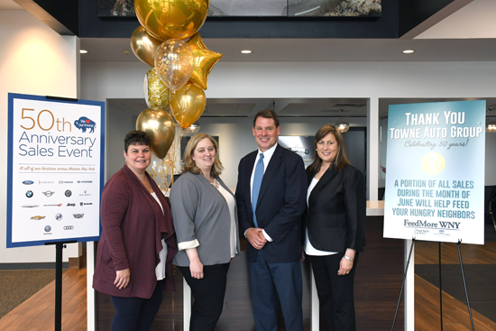 In celebration of its 50th anniversary, Towne Automotive Group announced it is holding a special sales promotion during the month of June to benefit FeedMore WNY. Towne Automotive Group will donate a portion of the proceeds from every vehicle sold during the promotion to the new nonprofit organization formed when Meals on Wheels for WNY and the Food Bank of WNY joined forces earlier this year.