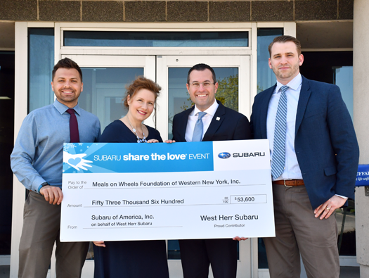 West Herr Subaru recently "shared the love" with FeedMore WNY. From Nov. 15 through Jan. 2, as part of the annual "Share the Love" campaign, local Subaru dealers had the opportunity to add a local charity to the list of organizations to which purchasers could designate a donation. West Herr Subaru once again selected FeedMore WNY's Meals on Wheels program.