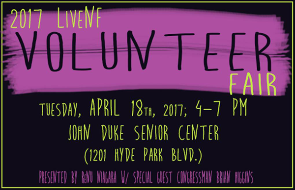 Congressman Brian Higgins, City of Niagara Falls Mayor Paul Dyster and Niagara University's ReNU Niagara announce the third annual LiveNF Volunteer Fair will take place from 4-7 p.m. Tuesday, April 18, at the John Duke Center, 1201 Hyde Park Blvd., Niagara Falls.
