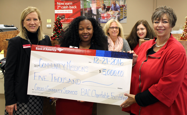 Community Missions received $5,000 of support from the Bank of America Charitable Foundation on Wednesday.
