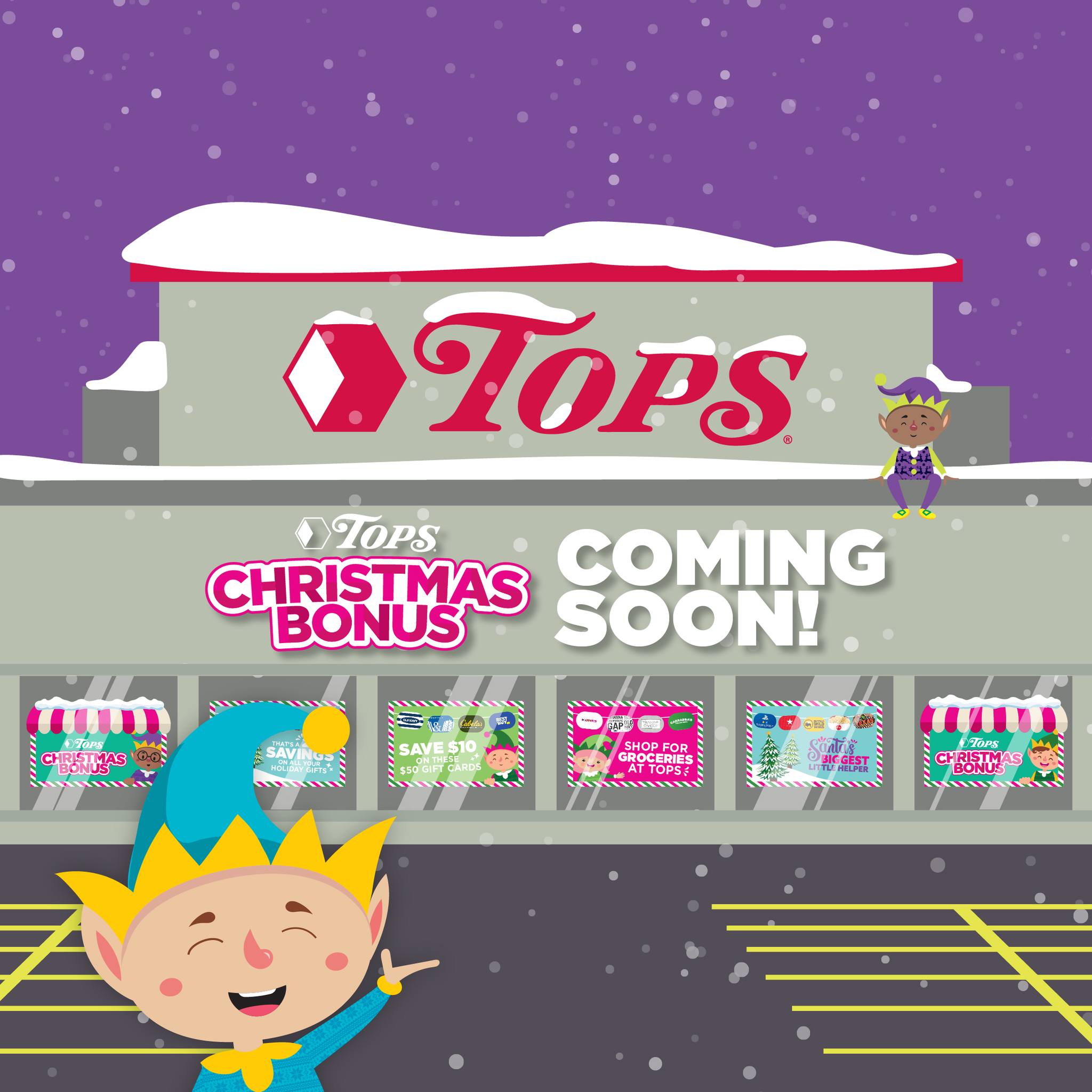 Santa's little elves are back and busy as ever helping you save big once again this holiday season with the return of Tops Christmas bonus. Now in its eighth season, Tops Christmas bonus has saved shoppers over $15 million on their holiday shopping. It's amazing how one stop has turned into huge savings on groceries, gas, and your holiday gifts!
