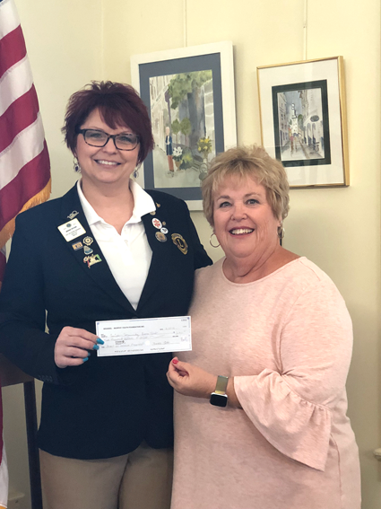 Newly elected Lions Club District Gov. Regina Cecconi is shown presenting a $2,000 check from the Brandel Murphy Foundation to Lewiston Community Lions President Sheila Zuhlke. The check, along with matched funds, will go toward the inclusive playground expected to be built this summer in the Village of Lewiston.