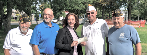 Niagara County Legislator Rebecca Wydysh presented Veterans of Foreign Wars Downriver Post 7487 leaders with a Greenway check that will go toward the establishment of the new Lewiston Veterans Memorial.
