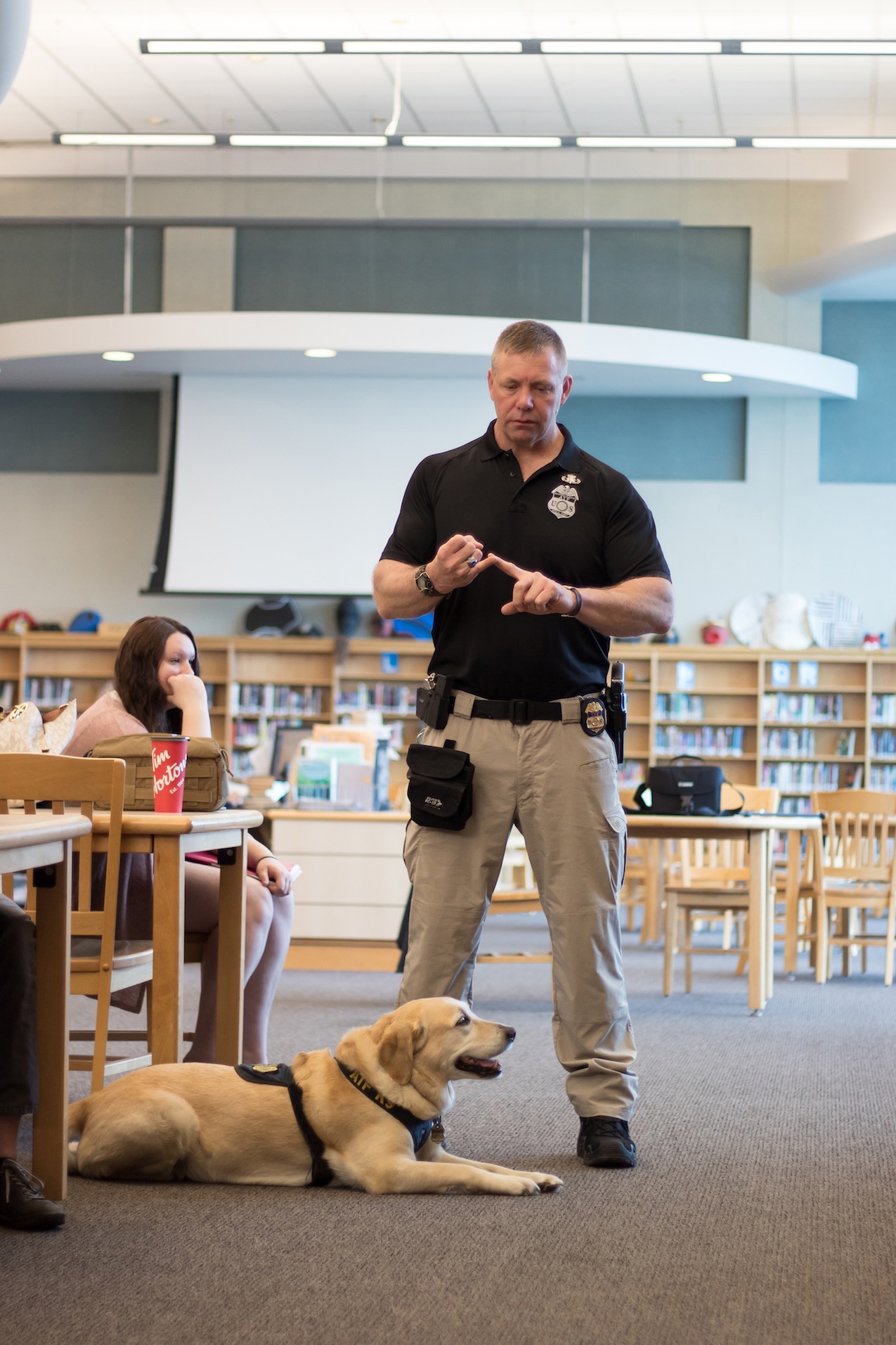 North Tonawanda High School social studies teacher Peter Fezer loves to bring in guest speakers to talk to his students. He was thrilled that ATF (Bureau of Alcohol, Tobacco, Firearms and Explosives) Special Agent Gerry O'Sullivan and his K9 Dolly agreed to spend some time talking to his students.